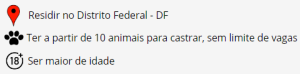 Após a liberação, você terá um prazo de 45 dias para castrar todos os animais liberados.